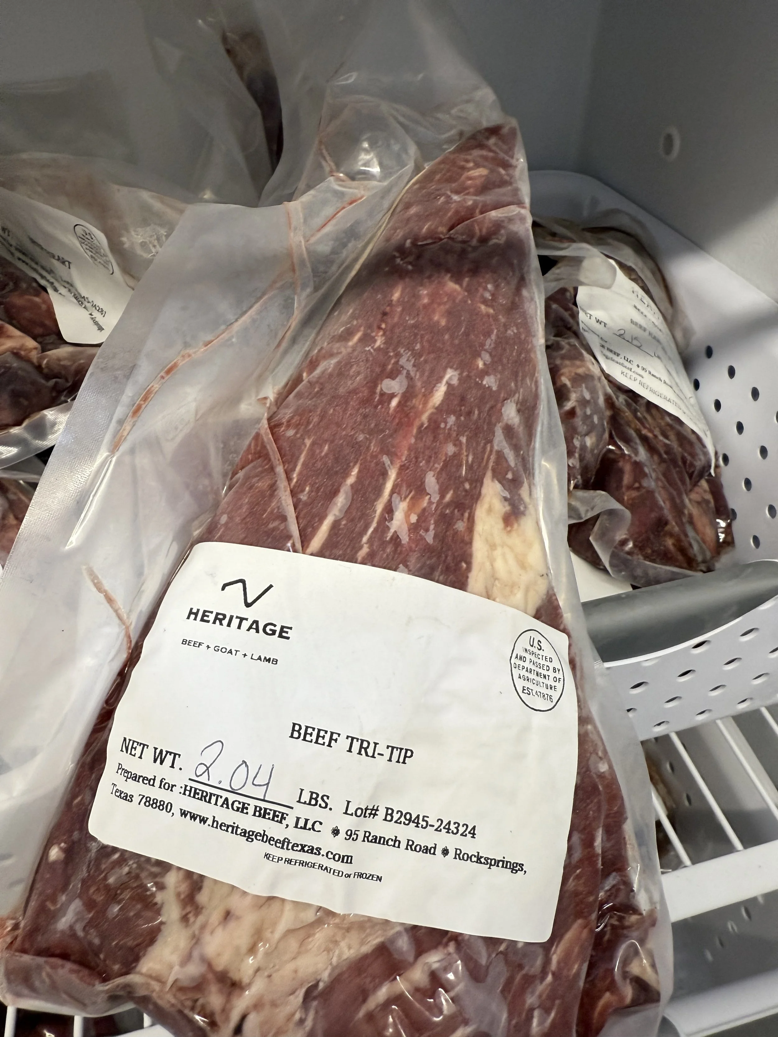Categories: All Jerky Lamb Goat Beef Shop All | Jerky | Lamb | Goat | Beef | Tri-tip Roast $30.00 Beef Roast (Shoulder or Chuck) $30.00 Goat Ribs $34.00 Sold out Goat Stew Meat $18.00 Goat Leg $80.00 Sold out Osso Buco (Beef shanks) $20.00 Ground Lamb $16.00 Lamb Rib Chops $12.00 Sirloin Steak $30.00 Tenderized Round (Cube steak/Cutlets) $11.50 Sold out Steak Milanesa Sale Price: $20.00 Original Price: $24.00 Sale Ground Beef $10.00 Salt and Pepper only Jerky Sale Price: $12.00 Original Price: $16.00 Sold out Short Rib Bundle Sale Price: $72.00 Original Price: $80.00 Sale Texas Wagyu INSTA Bundle Sale Price: $119.00 Original Price: $150.00 Sale Whole Beef Tenderloin $150.00 Sold out Texas Wagyu New York Strips $18.00 Texas Wagyu Ribeye Steaks $24.00 Texas Wagyu Beef Stew Meat Sale Price: $11.00 Original Price: $12.00 Sale Texas Wagyu Ground Beef Bundle Sale Price: $135.00 Original Price: $150.00 Sale